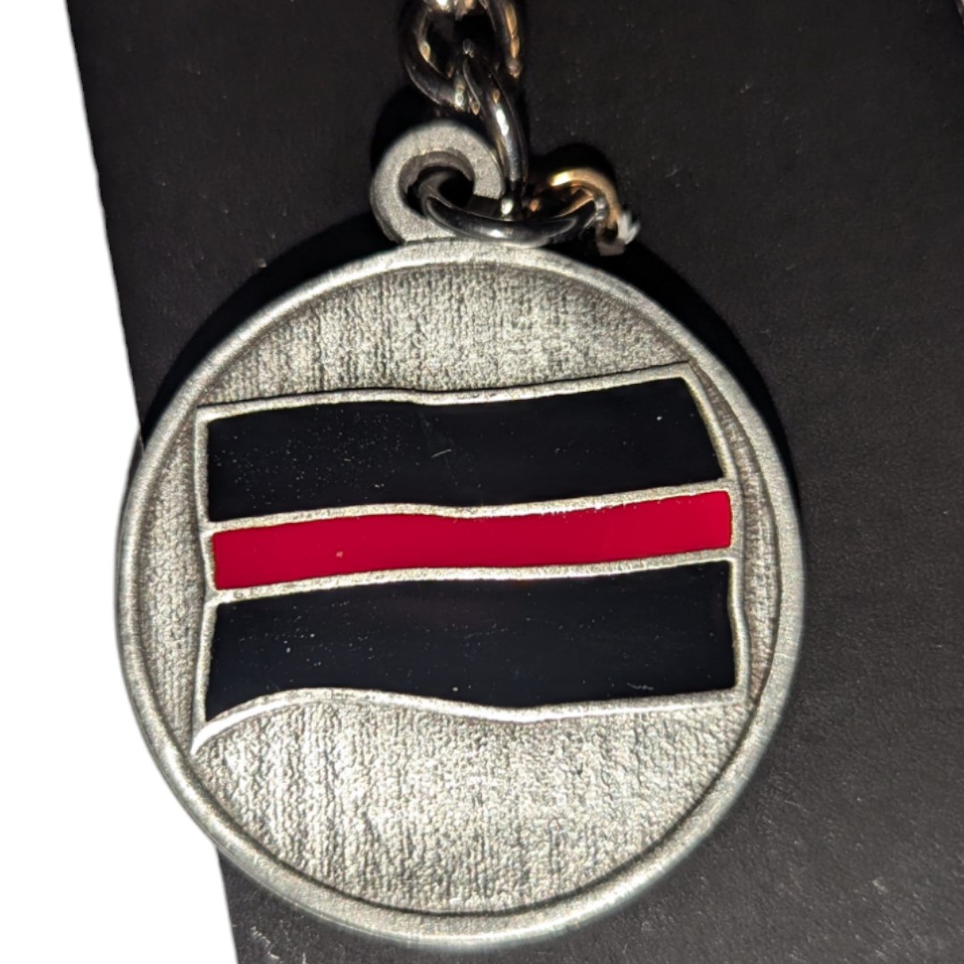This is the seal of the foundation that was started in 2000.  This key chain by Sparta Pewter features the seal of the NCFFF on one side and the red line flag on the back.  This is a lead free pewter key chain.  4.5″ long including ring. Coin is 3.2mm thick and 38mm across.